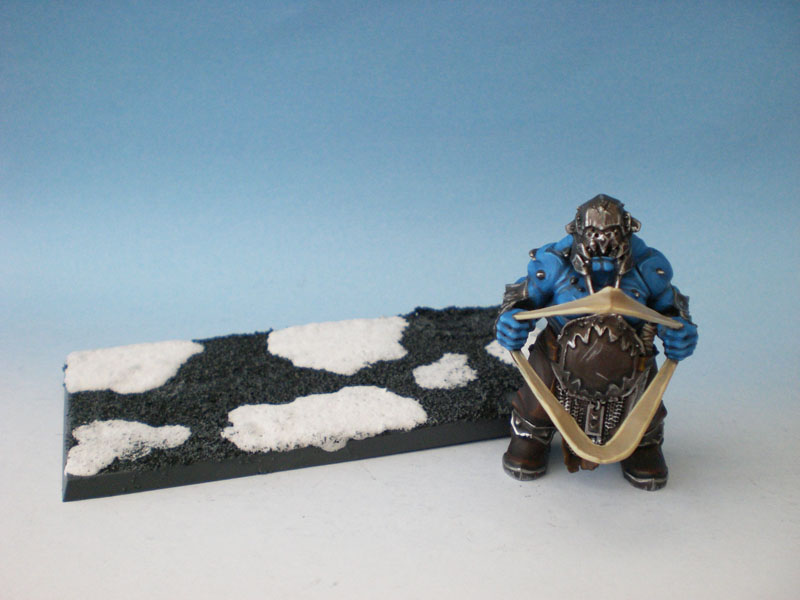This picture shows the Ogre and the Base after they were finished. Snow was added to the base using a mixture of Sodium Bicarbonate, PVA Glue and Water.
