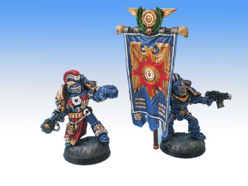 This commission is to paint a small pre-heresy Ultramarines strike force. This includes 1 x Captain, 1 x Standard Bearer, 2 x Sergeants and 9 x Tactical Marines.