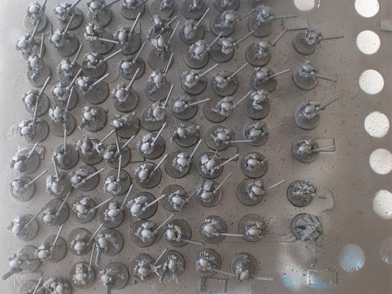 This picture shows the first batch of models after all the base colours were applied and shaded.