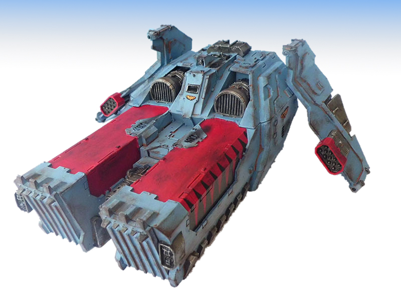 This Commission was to build and paint a Caestus Assault Ram for the Space Wolves faction of Warhammer 40,000. The model was painted to our Tabletop Level and included a weathering effect.