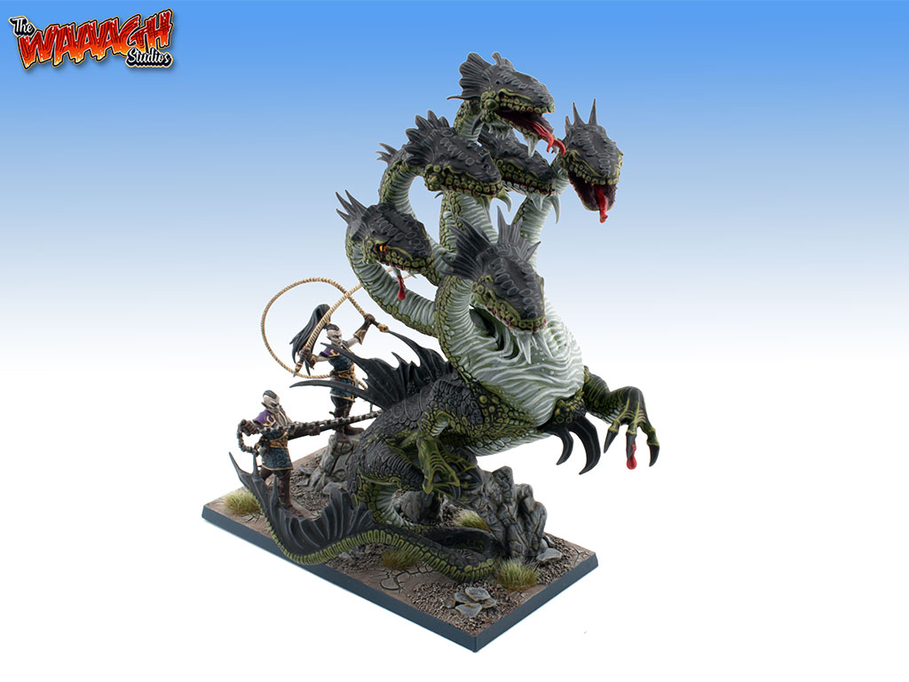 Dark Elves Hydra Warhammer Age of Sigmar Dark Elves This Commission was to build and paint a Dark Elves Hydra from Warhammer Age of Sigmar to our Tabletop painting level. Completed Pictures